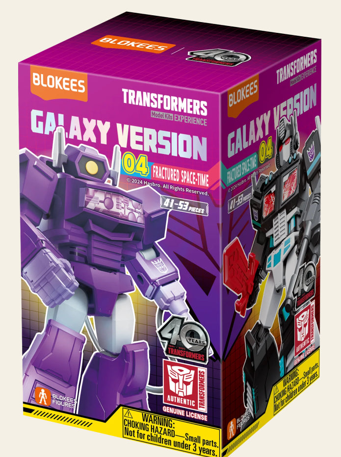 Gear up for an epic adventure with the Blokees Transformers Galaxy Version 04: Fractured Space-Time! Unbox, assemble, and display iconic characters like Ultra Magnus, Nemesis Prime, Tarn, Snarl, Smokescreen, Scrapper, Hook, and Shockwave.