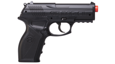 CO2 power gives the Air Mag C11 impressive strength, while its substantial weight and comfortable grip give it a truly realistic quality. The Air Mag C11 features an under-barrel, Weaver-style rail and a quick-release, 16-round clip. With velocities of up to 400 fps, this is a reliable, convenient and inexpensive alternative to real pistols for training and practice purposes.