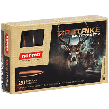 Norma's Soft Point is a popular classic among deer hunters all over the world. It features a flat-based bullet which offers consistent accuracy every time. The exposed lead tip, coupled with an expanding quick lead core results in fast knock down effect and deep penetrative performance, delivering all its energy in the vital organs.