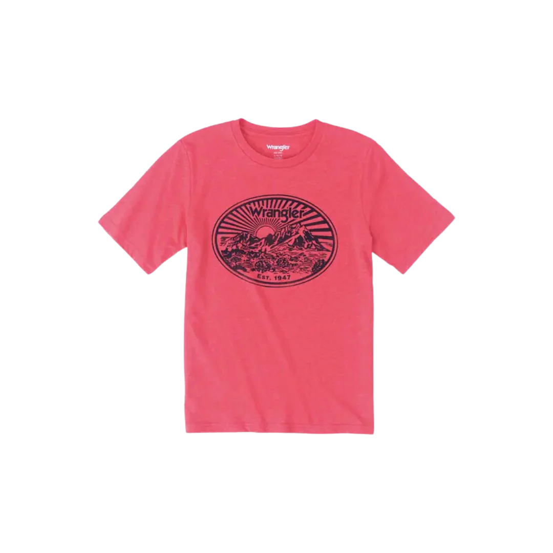 Unleash the spirit of the Wild West with the Wrangler Youth Boy's Molten Lava Red Tee Shirt.