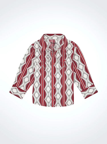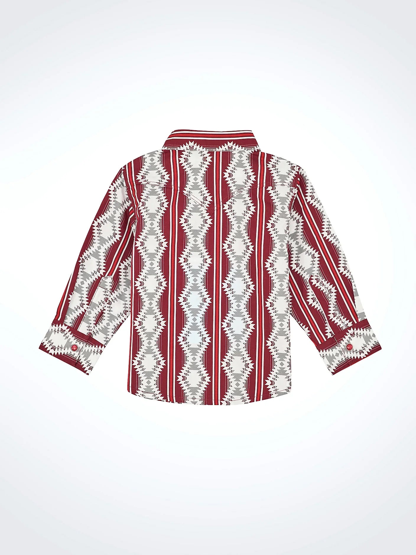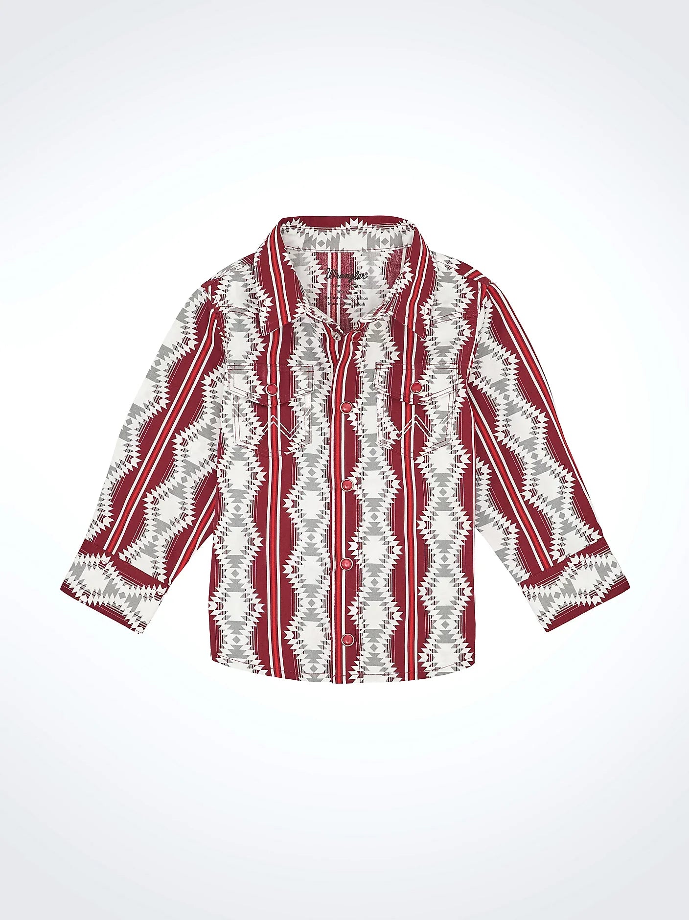 Wrangler Toddler Checotah Southwestern Striped Long Sleeve Snap Western Shirt (Red) Size 6-9M