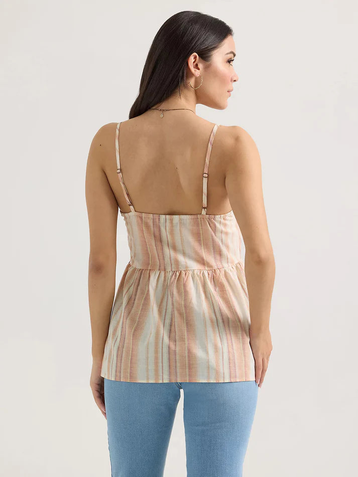 Wrangler Women's Retro Snap Front Peplum Strap Tank Top (Sandy Stripe) Size M