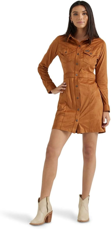 Wrangler Women's Western Vintage Snap Shirt Dress (Brown) Size L