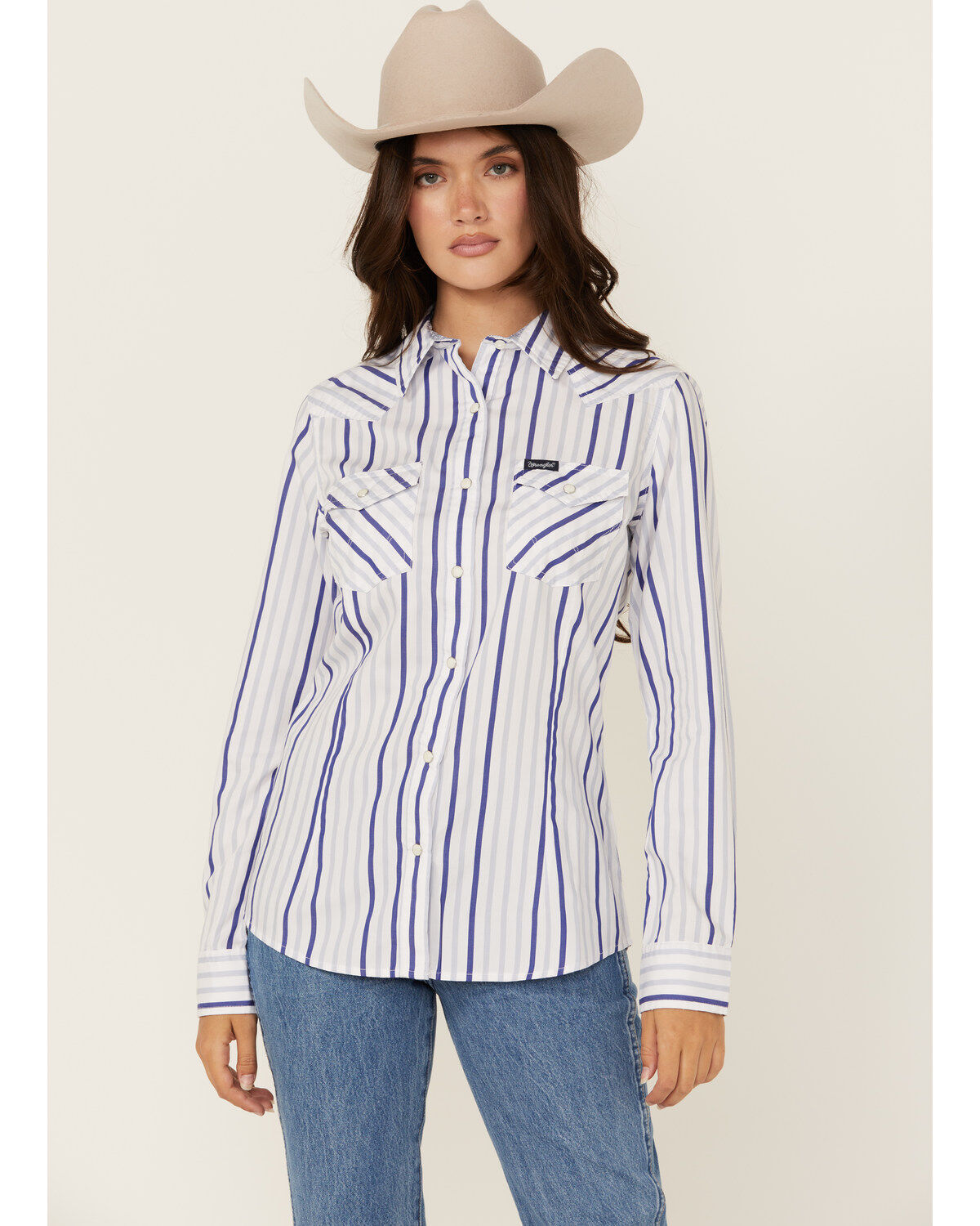 Home Shop Apparel Sales Wrangler Women's Retro Western Dress Snap Top (Blue) Size M