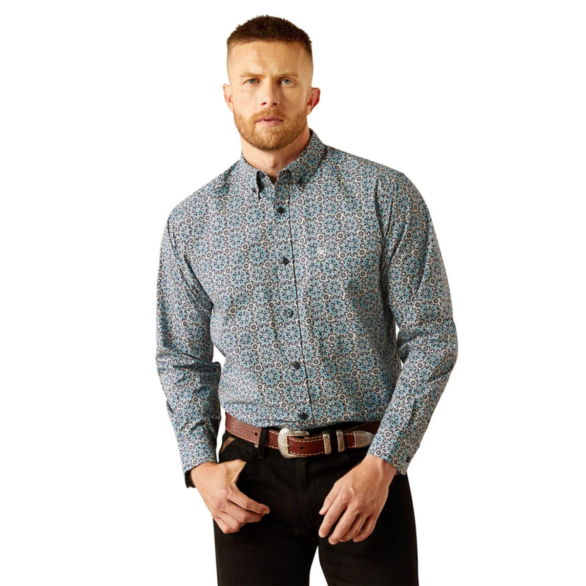 Ariat Men's Santiago Print Long Sleeve Western Shirt (Dark Teal) Size