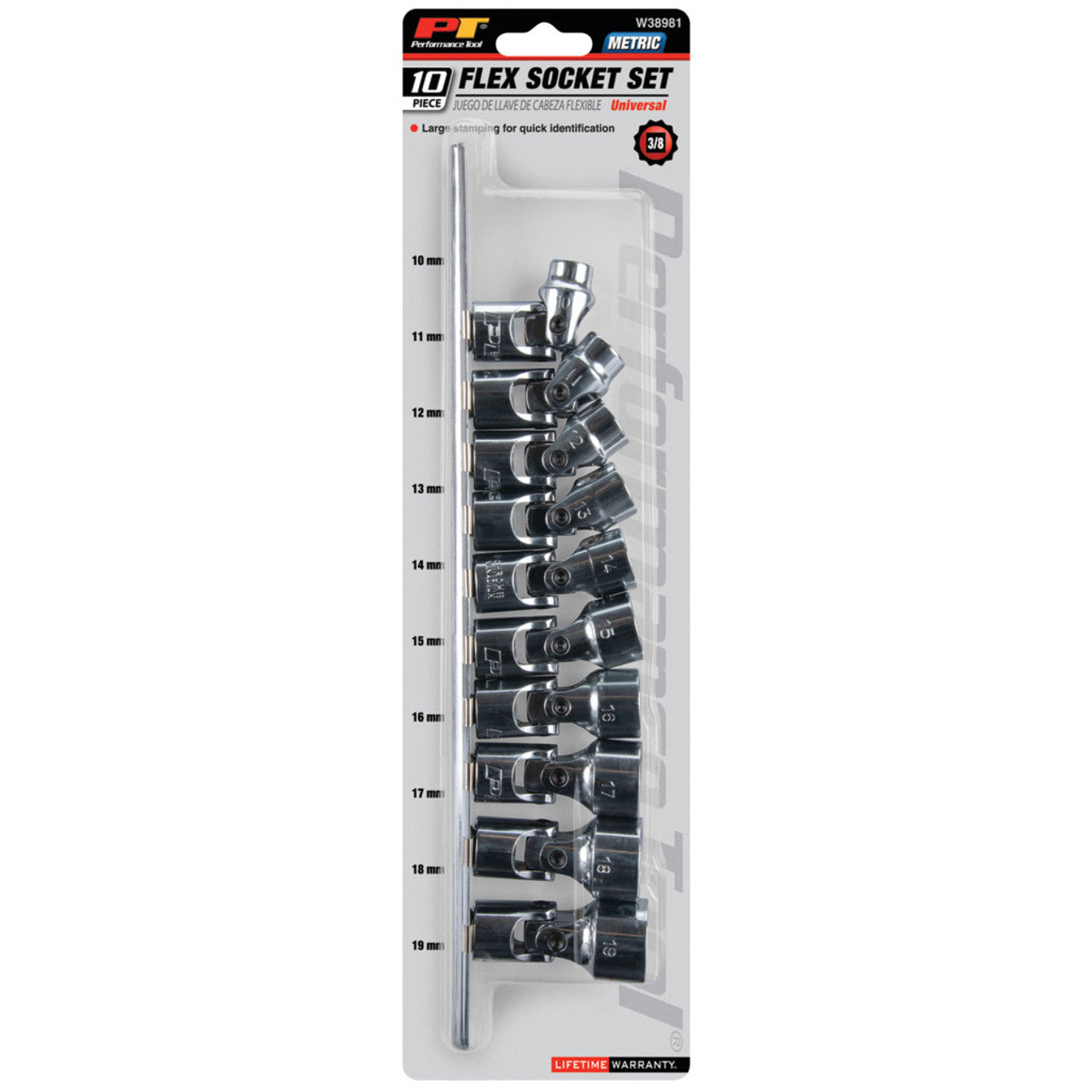 Performance Tool 10 pc. 3/8" Dr. Metric Flex Socket Set