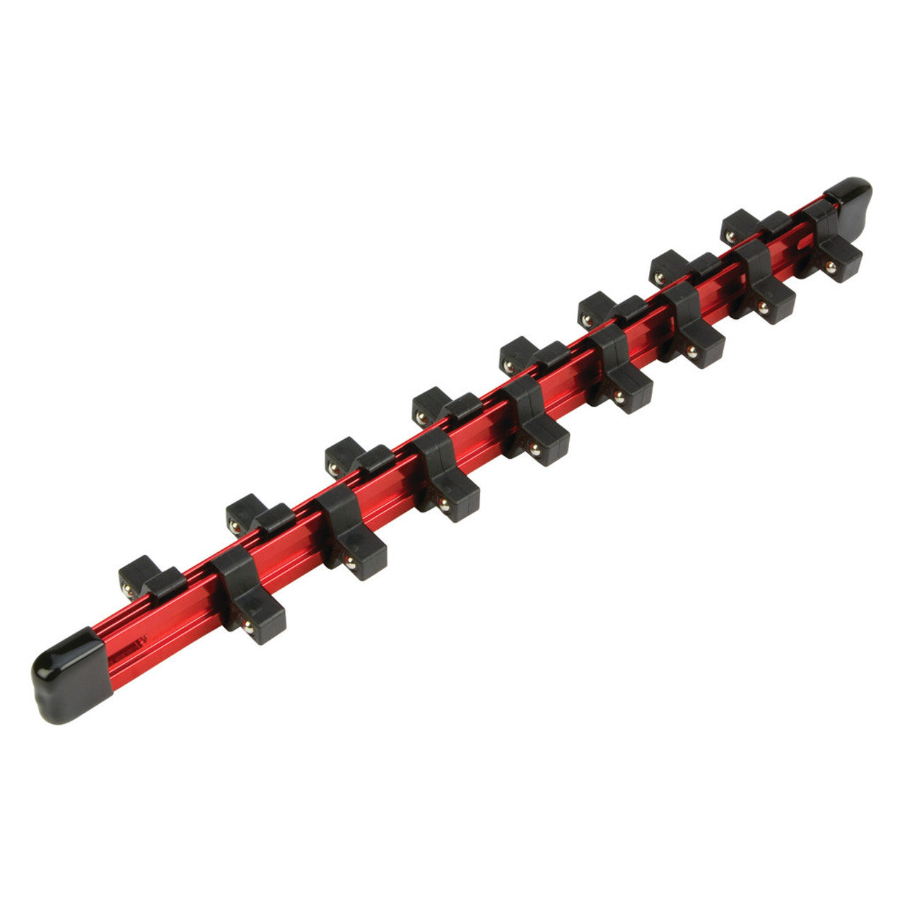 Organize your 3/8 in. drive sockets with this rail that features spring-loaded ball bearings for easy removal.