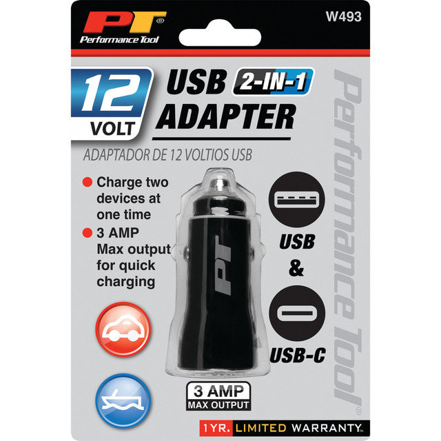 This dual 12V USB/USB-C adapter allows you to charge two devices at the same time. Recharges most phones in 3-4 hours.