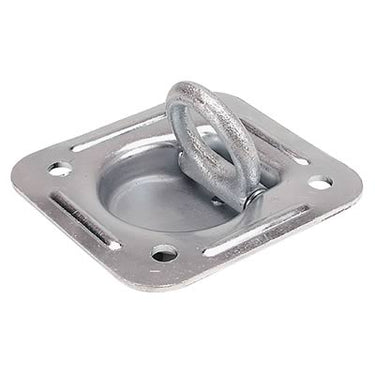 Mac's recessed D-rings lift from the recess for flush operation. Zinc plated to resist corrosion with a 5000 lb. rating each. We strongly recommend the under-floor 1/4 in. thick backing plate to achieve maximum capacity of the D-Ring.