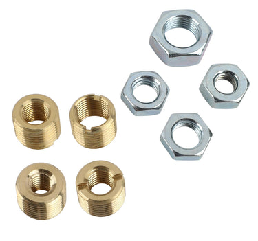 OTB Gear shift knob adapters allow you to convert a normal aftermarket shift knob from 16mm to other common metric or U.S. thread sizes. The inserts are made from brass to eliminate seizure, which often occurs with aluminum. These adapters are available individually or in multi-piece sets for specific applications, and jam nuts are included for each adapter.