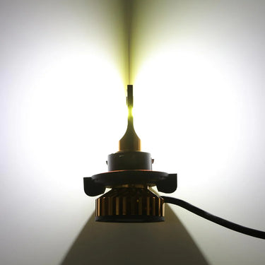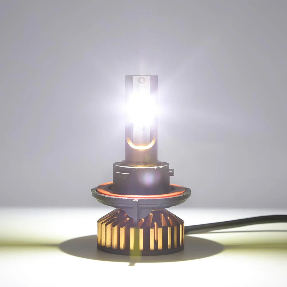 - H13 LED light bulbs with 360° illumination CSP LED double-sided chips, provide up to 300% more light with a 6500K Xenon white clearer color. Luminous Flux: 10000lm/set (5000lm/bulb),3 times brighter than the halogen lamp.