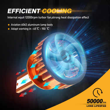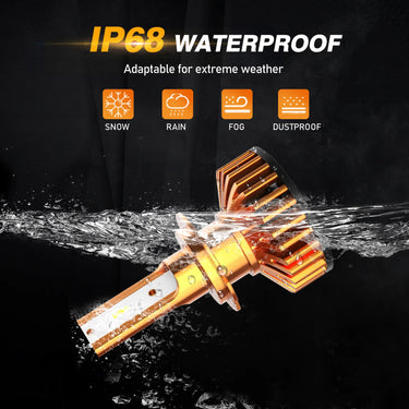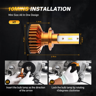 • H7 LED light bulbs with 360° illumination CSP LED double-sided chips, provide up to 300% more light with a 6500K Xenon white clearer color. Luminous Flux: 10000lm/set (5000lm/bulb),3 times brighter than the halogen lamp.