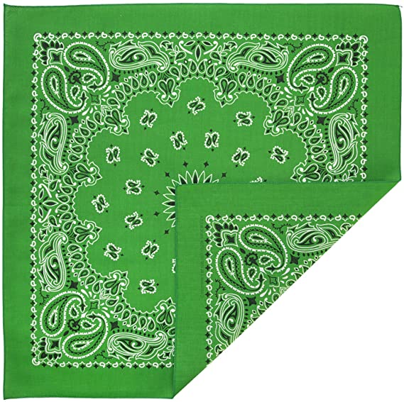 • LARGE COTTON BANDANA – Large 22” x 22” western style square bandana is a perfect size to wear as a headband for a party or during a workout, head scarf to cover hair or bald head, wristband, neck tie and more. Made Proudly In The USA