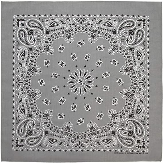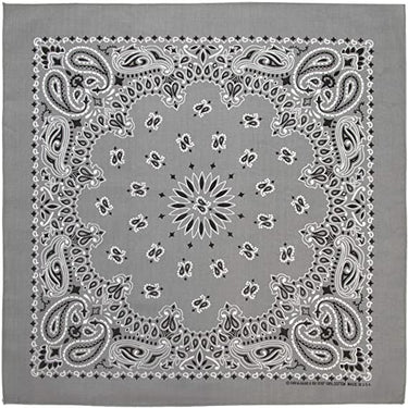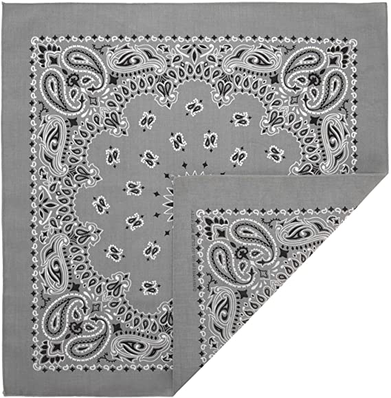 - LARGE COTTON BANDANA – Large 22” x 22” western style square bandana is a perfect size to wear as a headband for a party or during a workout, head scarf to cover hair or bald head, wristband, neck tie and more. Made Proudly In The USA