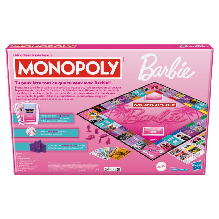 Introducing the Monopoly Barbie Board Game – where classic family game night meets the fabulous world of Barbie! Dive into an exciting adventure in Barbie's dream world as you buy, sell, and trade iconic locations inspired by Barbie’s favorite destinations. Perfect for Barbie fans and board game enthusiasts alike, this special edition combines the strategic thrill of Monopoly with the glitz and glamour of Barbie’s lifestyle. Featuring custom Barbie-themed tokens, beautifully designed properties, and exclusive 'Dream Chest' and 'BFF's Inspiration' cards, every moment is a stylish opportunity to achieve your dreams. Whether you're purchasing the glamorous Malibu mansion or vacationing at the Dreamhouse pool, there's a little bit of Barbie magic in every turn. Suitable for ages 8 and up, the Monopoly Barbie Board Game offers endless fun for families, friends, and Barbie fans everywhere!