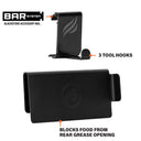 Side Shelf Rail Accessory Tool Hooks and Grease Gate. The Side Shelf Rail Tool Hooks and Grease Gate keep your favorite tools within arm's reach. Whether you are cooking up a stir fry or searing a steak, conveniently store your favorite spatulas, griddle scoops, and tongs on your side shelf. This combo comes with a grease gate that slides over the rear grease trap to prevent larger bits of food from falling through the grease trap. Make the most of your Blackstone with these heavy-duty accessories.