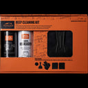 Scrape away the grease, grime, and ash and start fresh. The Traeger Deep Cleaning Kit has everything you need to clean up your grill inside and out. This kit includes two cleaning solutions, two towels, a scraper, and scrub pad.