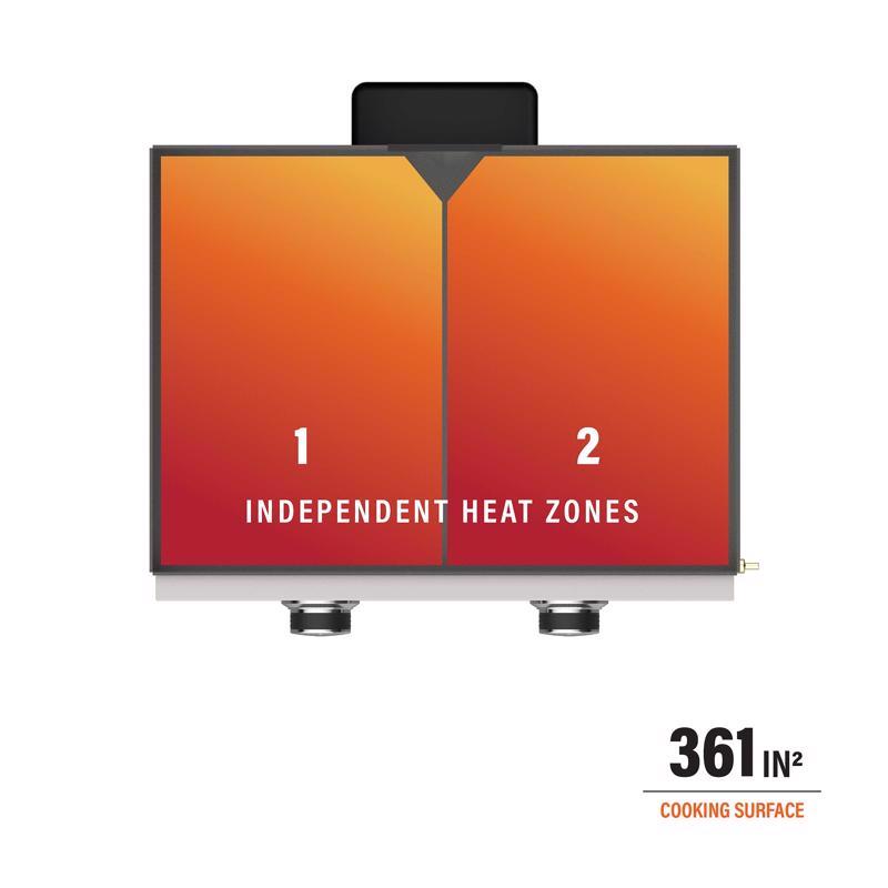 Blackstone 22 in Griddle Table Top. The 22 in. griddle has quick & easy clean up,taking the hassle out of outdoor cooking. 330 sq. in. of a cold rolled steel cooking top with duel mini H burners that produce. 24,000 BTU for fast, even cooking surface. 22 in. griddle has a unique rear grease management system for easy cleanup while cooking.
