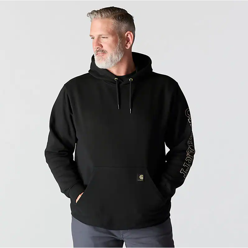 Versatile midweight warmth and casual comfort. This men's cotton-blend graphic hoodie is a go-to layer for cool mornings and camp wear. A loose fit allows for easy layering and unrestricted movement.