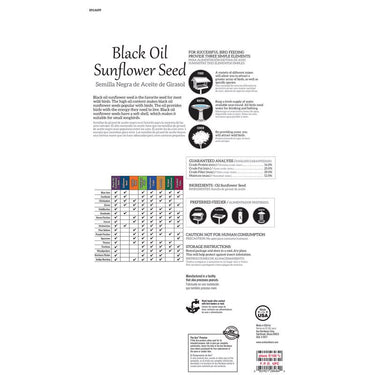 Ace black oil sunflower is the best single grain for attracting the widest variety of wild birds to your backyard. The high oil content makes black oil sunflower seeds popular with wild birds. The oil provides birds with the energy they need to live. Black oil sunflower seeds have a soft shell, which makes it suitable for small songbirds. Triple cleaned for purity - so birds get the best of the seed.