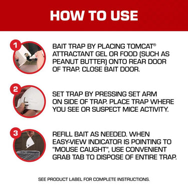 Tomcat Kill & Contain Mouse Trap kills mice. The exclusive design kills and contains the mouse. Easy to use, the trap is great for tight spaces and sets with just one touch - AND, you do not have to see the mouse to know its been caught. *
