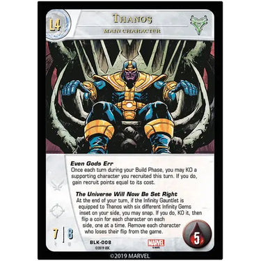 This final installment in the 3-part Vs. System 2PCG Infinity War arc is a boost for the forces of evil. Infamous villains Thanos, Nebula, Mistress Death and others have arrived to wage war on the universe-is your deck strong enough to stop them? Don’t let Thanos gain control of the Infinity Gauntlet…unless of course you are Thanos!