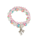 Our Sparkle Pony Bracelet set is just as it sounds! Made with rainbow crystal beads, translucent white beads & finished with a silver unicorn charm this set is sure to be eye catching! Pair it with its matching translucent pink bracelet to complete the look! Our children's jewelry is strung with double the elastic to add extra durability.