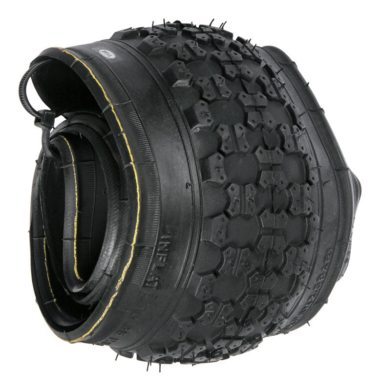 This 16" tire features a grippy tread for sure traction and safety. Carbon steel bead allows tire to be folded and unfolded without damage for easy storage.