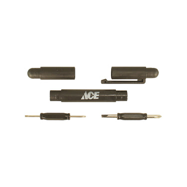 Ace brand pocket precision multi- bit screwdriver features 1/8 in. and 1/16 in. slotted and #0 and #00 phillips insert bits.