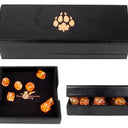 Role 4 Initiative's dice box / rolling tray features a leather look exterior with soft felt interior. Three separate compartments hold up to 30 dice and/or 3 minis. Gold foil logos on both interior and exterior (Druid) give it a touch of class. Convert between storage box and rolling tray in a snap. Magnets ensure the box stays closed during transport and remains open in the tray configuration for rolling dice. Packaging features a cardboard sleeve with a hang tab.