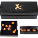 Role 4 Initiative's dice box / rolling tray features a leather look exterior with soft felt interior. Three separate compartments hold up to 30 dice and/or 3 minis. Gold foil logos on both interior and exterior (Monk) give it a touch of class. Convert between storage box and rolling tray in a snap. Magnets ensure the box stays closed during transport and remains open in the tray configuration for rolling dice. Packaging features a cardboard sleeve with a hang tab.