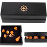 Role 4 Initiative's dice box / rolling tray features a leather look exterior with soft felt interior. Three separate compartments hold up to 30 dice and/or 3 minis. Gold foil logos on both interior and exterior (Cleric) give it a touch of class. Convert between storage box and rolling tray in a snap. Magnets ensure the box stays closed during transport and remains open in the tray configuration for rolling dice. Packaging features a cardboard sleeve with a hang tab.