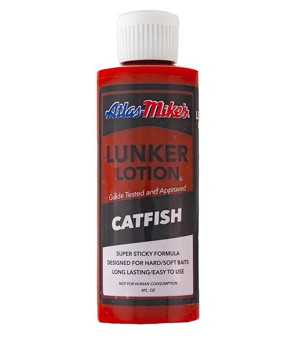 Atlas Mike’s Lunker Lotion – Catfish: Lunker Lotion has quickly become a favorite among anglers and guides… and for good reason! It helps catch more fish! Special blend of concentrated scents, flavors, amino acids and neon colors combined with our super sticky formula makes this a must have for all anglers. Holds on lures and baits longer, resulting in more aggressive strikes and more fish. Apply directly to any lure or bait and out-fish everyone in the boat. Choose from variety of special blends to target fish of your choice. Effective in both salt and fresh water.