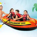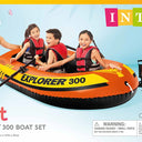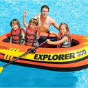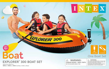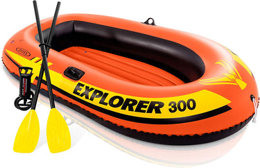 Have a boat race with friends or leisurely cruise around the pool on lazy summer days. This 3-Person inflatable boat features a grab rope, oar locks and soft inflatable floor for easy cruising. Set comes complete with 48” Deluxe Aluminum Oars and a Mini Hand Pump.