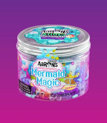 Time to explore the world under the sea with Crazy Aaron's® Slime Charmers™ Mermaid Magic. This beautiful teal cloud slime will have you creating the most amazing mermaid world.  Tropical Coconut and Pineapple scent for the ultimate sensory expreience. Mix and sculpt with the magical mermaid charms including a mermaid tail, mermaids and seashells. So dive deep and discover another world with Slime Charmers™ Mermaid Magic!