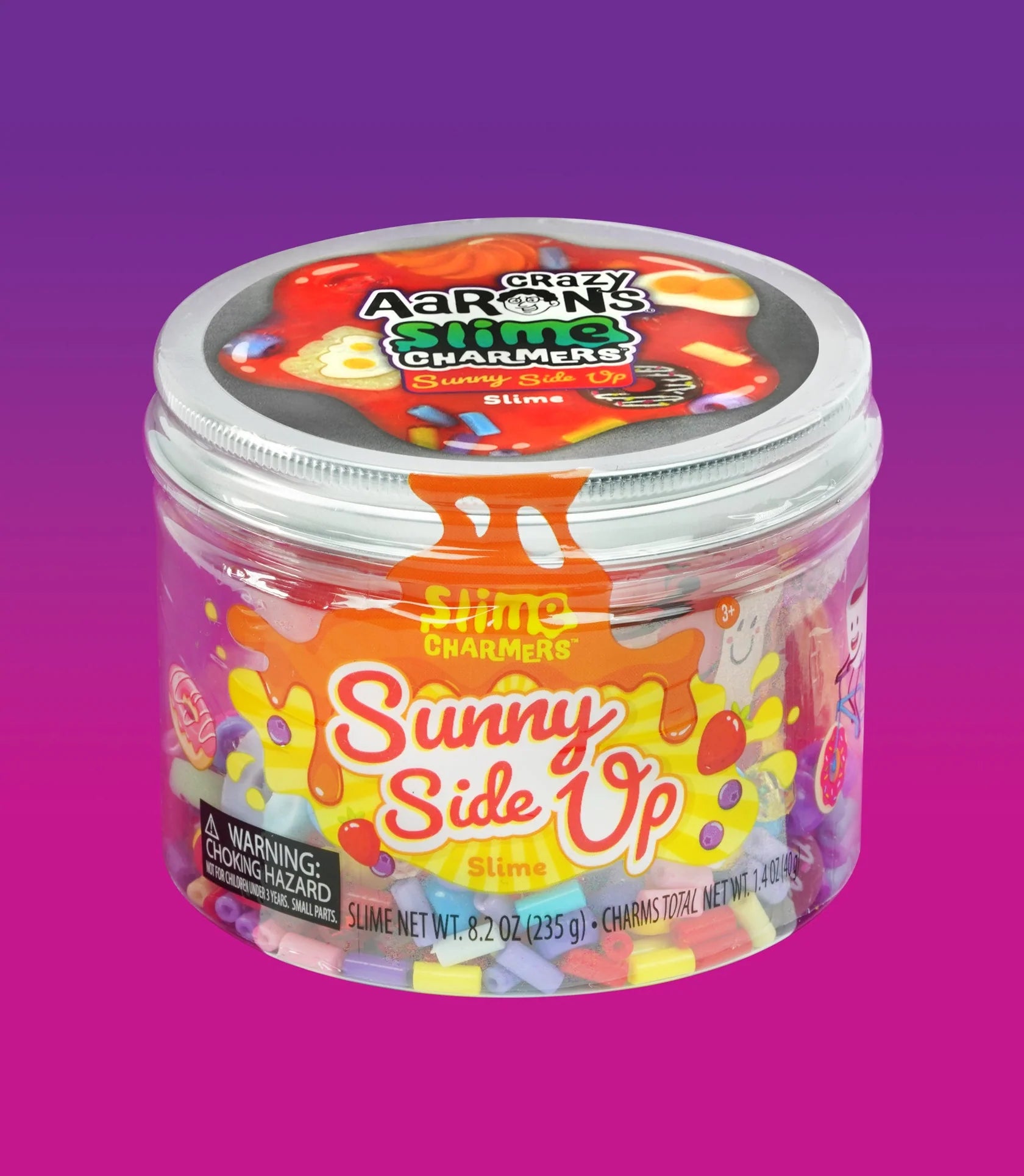 Hear the sizzle and awake the senses with the new Crazy Aaron’s® Slime Charmers™ Sunny Side Up.  This classic red slime is filled with all the charms to start your day off right.  Go savory with fried eggs or satisfy your need for sweets with a frosted donut or croissant.  Mix, pick and flip these colorful charms to create your own egg-cellent experience with Slime Charmers™ Sunny Side Up.