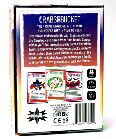 Crabs in a Bucket is a fast-paced card game for 2-6 players that blends chaos, strategy, and a cast of colorful crab characters.
