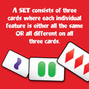 - EASY TO LEARN GAME: Race to make the most SETs by matching colors, shapes, shadings, or number of shapes on the cards. They have to be all the same or all different