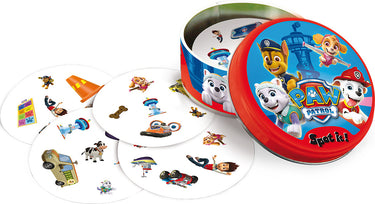 This new version of Spot It! combines different characters from Paw Patrol with one of the most beloved family card games! Players try to spot the single matching character between two cards in a playful battle of speedy observation. Paw Patrol fans will keep race to spot their favorite characters like Marshall, chase, Ryder, Skye, and more!