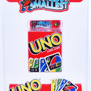 World’s Smallest UNO Card Game Experience the classic UNO game in a fun ultra-miniature size! The World’s Smallest UNO is a fully functional pocket-sized version of the iconic card game complete with 112 cards and a tiny tuck box. Perfect for travel collectors or a fun novelty gift this game brings all the excitement of regular UNO in a super-compact form. Despite its tiny size it actually works allowing you to play the game just like the original! Recommended for ages 6 and up.