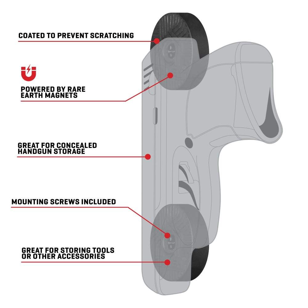 • COMPATIBILITY: Designed to hold handguns, tools, or partsmagnets can be used separately in your project space with proper spacing.