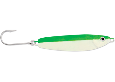 Luhr-Jensen Crippled Herring Jigging Spoon is a natural-looking but versatile lure that is very attractive to all types of fish worldwide. Crinkle finish that gives it a realistic baitfish look. This bait is a sight-sound lure which can be vertically jigged cast and retrieved and even trolled. Design imitates an injured baitfish viewed as an easy meal by predator fish. Offered in sizes ranging from 1/2 ounce to 5 ounce and is available in a wide range of colors and metal finishes.