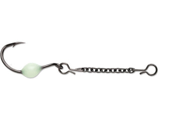 When the fish aren't biting, maybe it is time to replace your treble hook with the VMC Octopus Dropper Chain. For added action and attraction, this chain features a glow resin bead that stays charged for up to 15 minutes. Snap the dropper chain on to a weighted spoon or lure, tip it with live bait and you're all ready to haul in hungry panfish.