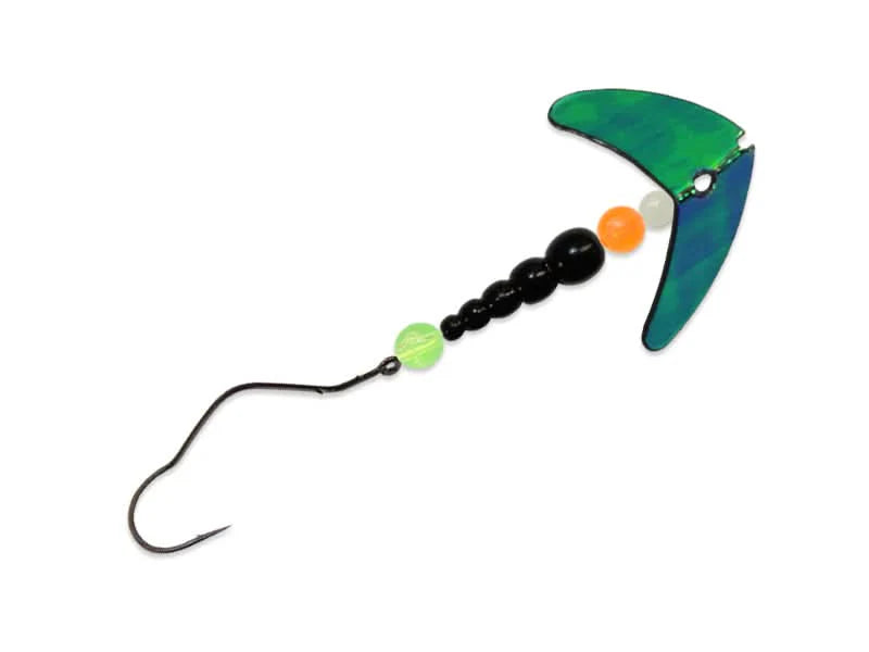 The Smile Blade Super Slow Death Rig is a heavy-duty version of the Slow Death Rig featuring a Mustad hook with a deeper bend, emulating a dying baitfish that walleye can't resist.
