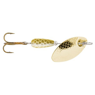 South Bend s Techny Spinnerbaits Freshwater Trout/Bass Fishing Lures Gold Color 1/32 oz. is a budget-friendly spinner that makes the most of a classic time-tested design. This inline spinner takes on a different look in the water when thanks to its shaft running through the blade design. The Techny Spinner s flashing blade hugs the bait to create a tight enticing profile. The body has a smooth taper that mimics the shape of a baitfish. You can fish this bait at any depth by adjusting your retrieve speed and no matter how fast you reel it in the vibration produced by the Techny Spinner s blade will attract nearby predators. The weight distribution of this bait s teardrop body allows you to cast it a mile. This spinner s needle-sharp treble hook ensures a solid connection to the trout bass walleye pike or other gamefish you re targeting. Every tackle box needs an assortment of this classic-style spinner—add a few of South Bend s value-priced Techny Spinners to yours.