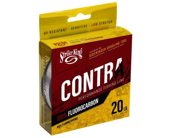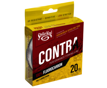 Ridiculous sensitivity, next-level abrasion resistance, and incredible handling characteristics are what define CONTRA Fluorocarbon, not price. CONTRA Fluoro was designed to the exacting specifications and needs of Strike King Pro Anglers. This is high-quality, performance-minded fluorocarbon at a great price. Let your line be the workhorse, not your wallet.