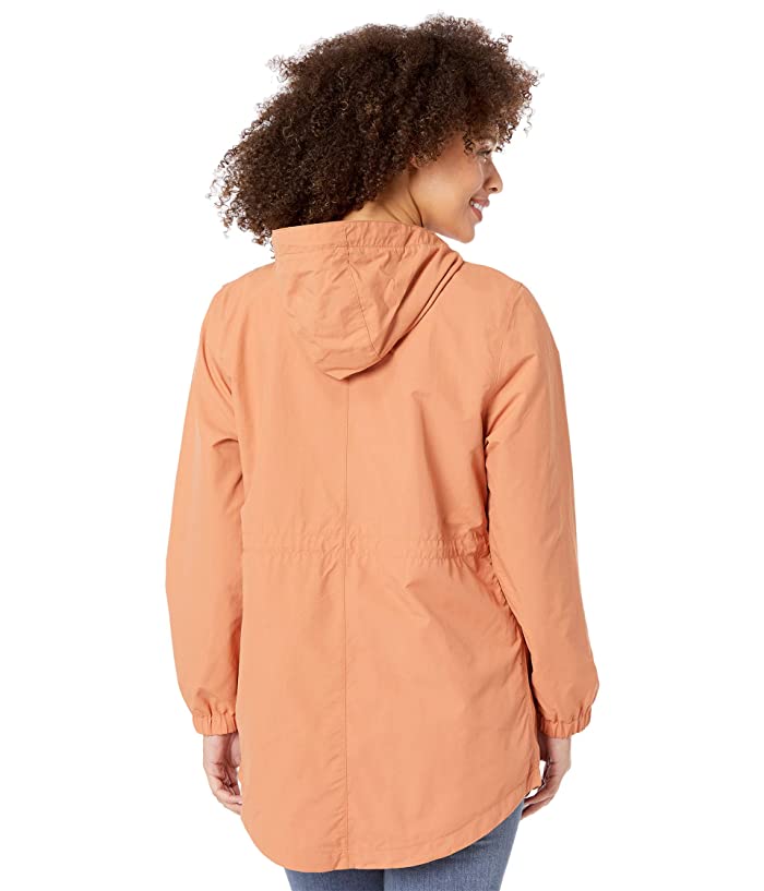When hot days turn to cool nights, this lightweight hooded women's rain jacket has your back. It's made of mesh-lined nylon with a water-repellent coating that stands up to light rain. This long layer weighs in at two ounces, making it easy to stash into your bag just in case.