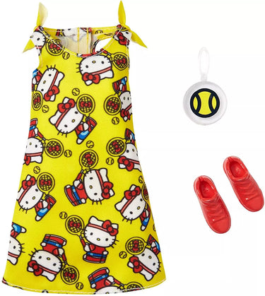 • Dress a doll in bright colors with this yellow dress with Hello Kitty tennis print and bows at the shoulders.