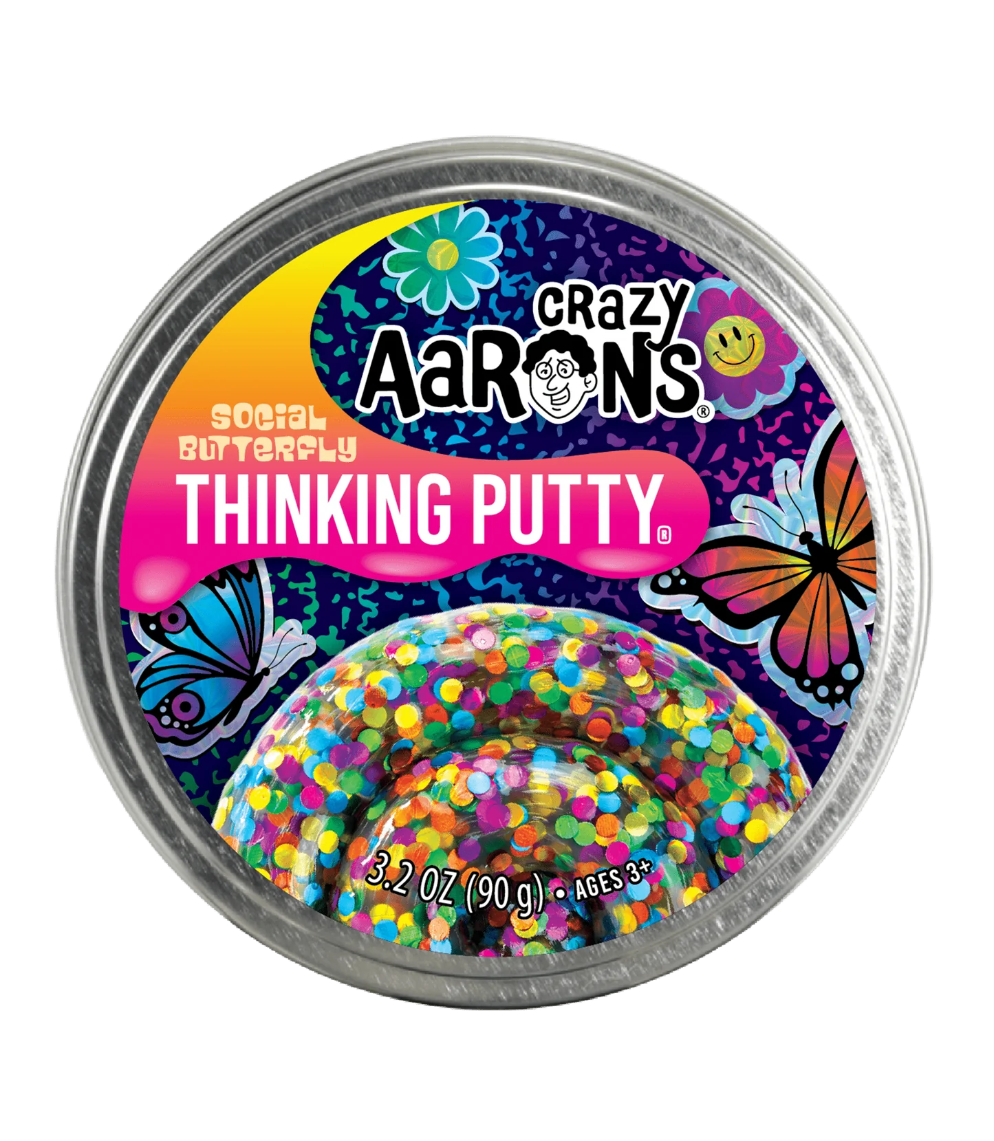 Social Butterfly Thinking Putty® is full of charisma and charm just like you! Whether you’re a self-described social butterfly or a wallflower, this lively rainbow confetti putty will get the party started.