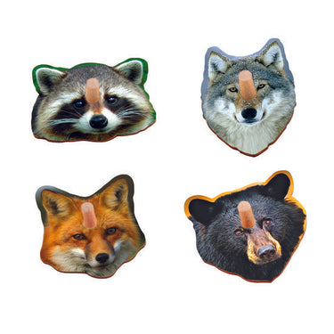 Sold separately. If you would like to purchase a specific item, please leave a note on your order during checkout. Four wooden animal face shapes are included- Bear, Fox, Raccoon and Wolf |